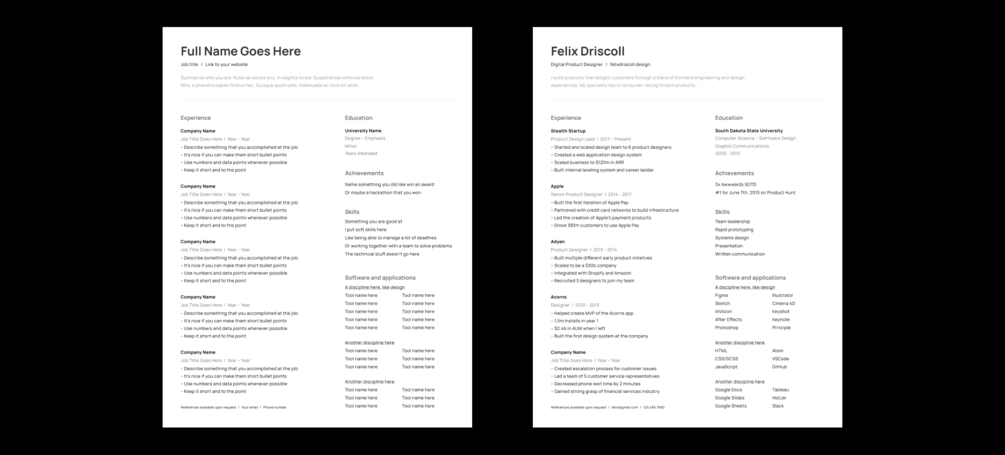 Editable resume that can be exported as a PDF, instructions on how to fill it out.